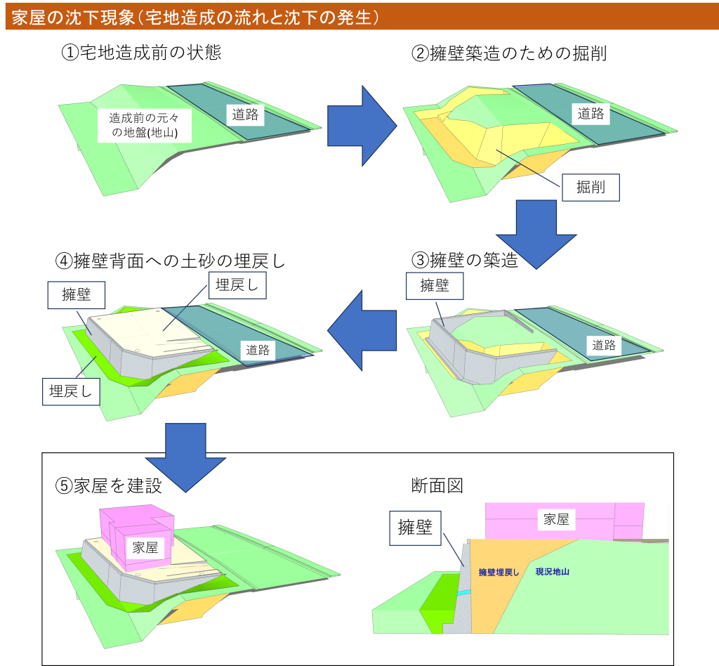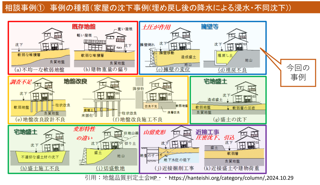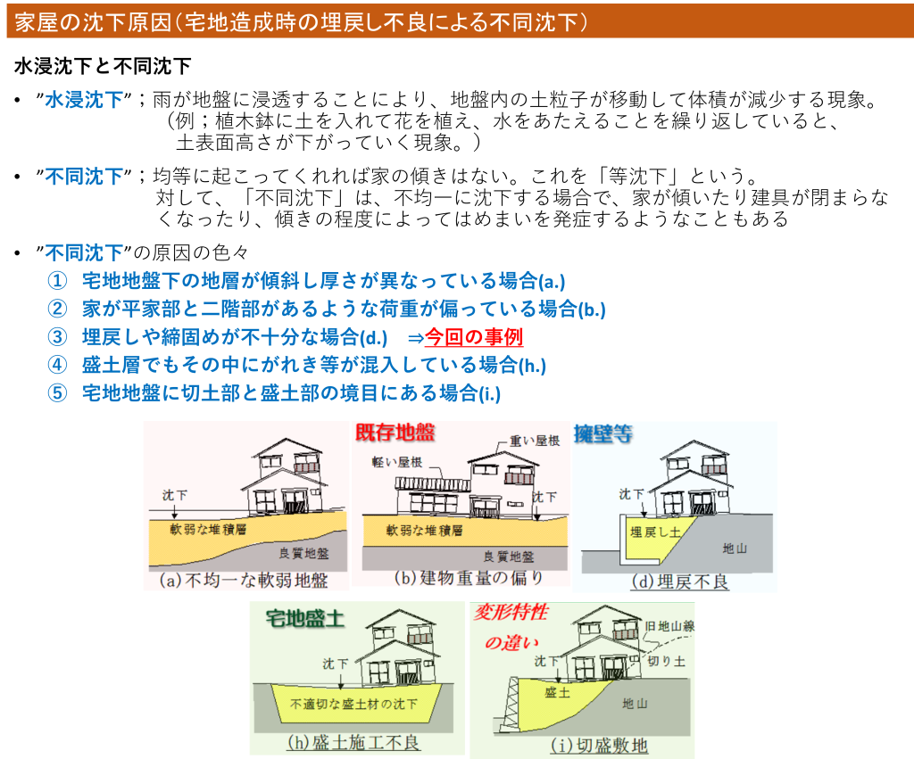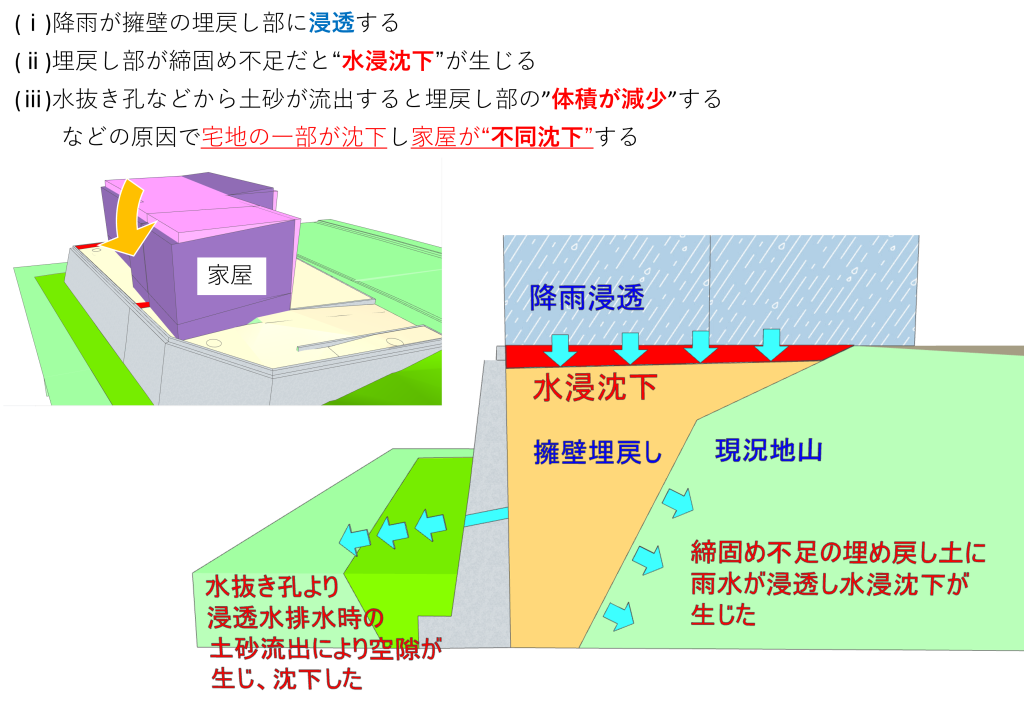 事例① (家屋の沈下事例(埋め戻し後の降水による浸水・不同沈下)