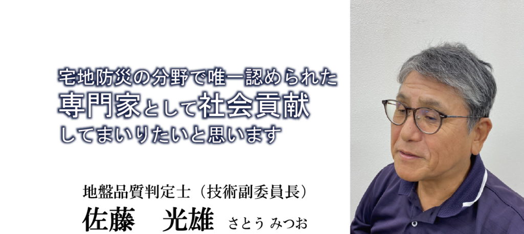近年は地震のほか、線状降水帯による異常な集中豪雨が発生し、毎年土砂災害の犠牲者が出ています。宅地の土砂災害、地盤災害を防止し、被害者を減らす、犠牲者を無くすために活動していきたいと思います。